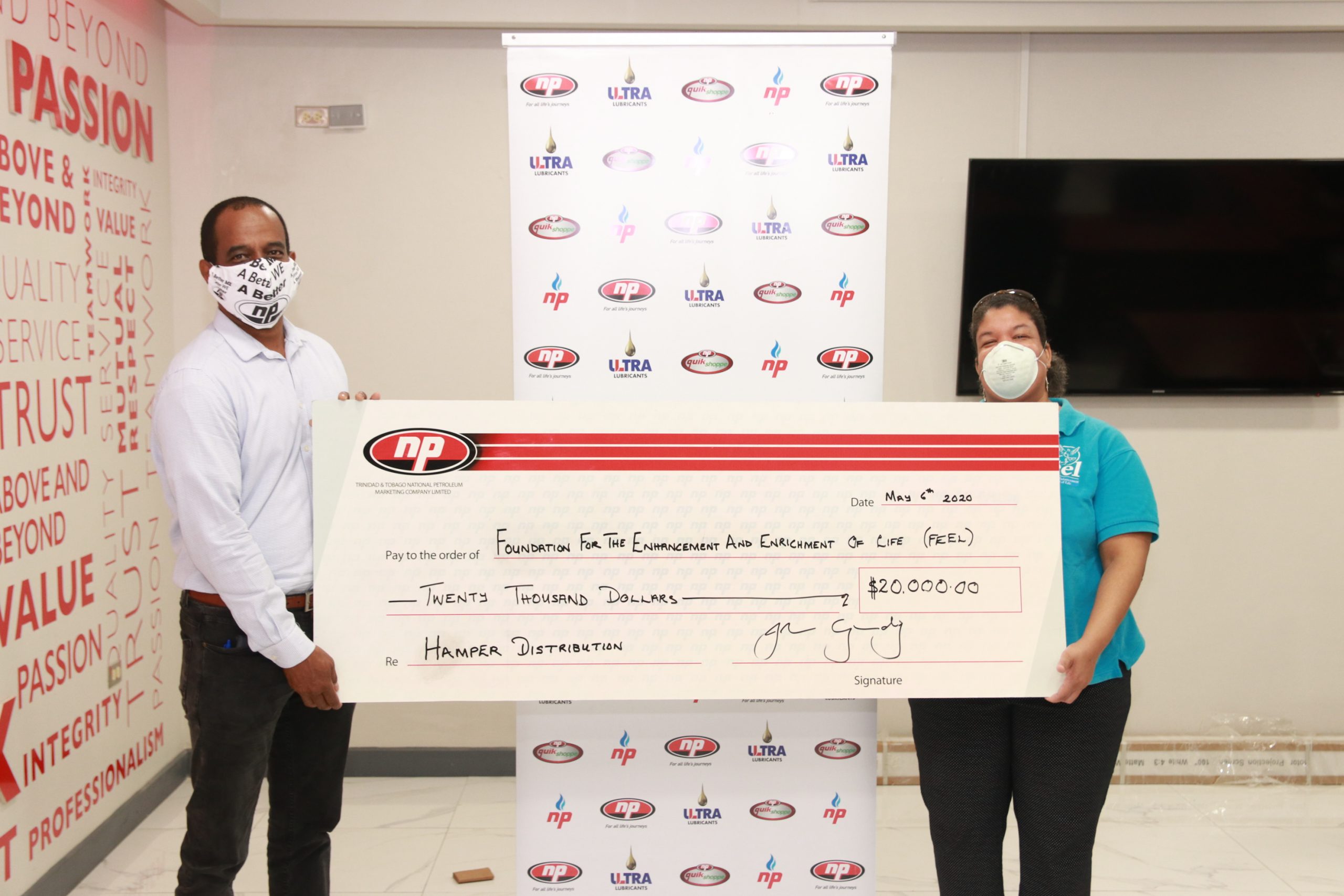 In an effort to meet the needs of vulnerable groups and those in need of support during this COVID-19 pandemic, the Trinidad & Tobago National Petroleum Marketing Company Limited (NP) on Wednesday 6 th May 2020, made a donation to the Foundation for the Enhancement and Enrichment of Life (FEEL) towards relief food hampers.